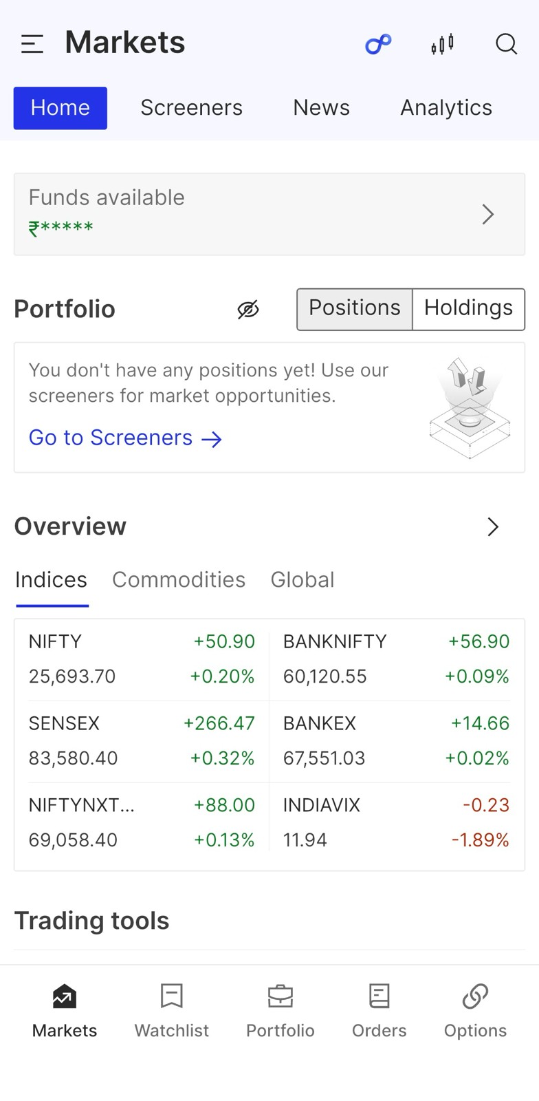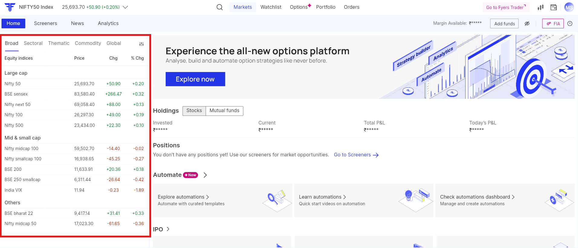 - Sign in at fyers.in/web and click Markets (lands on Home).