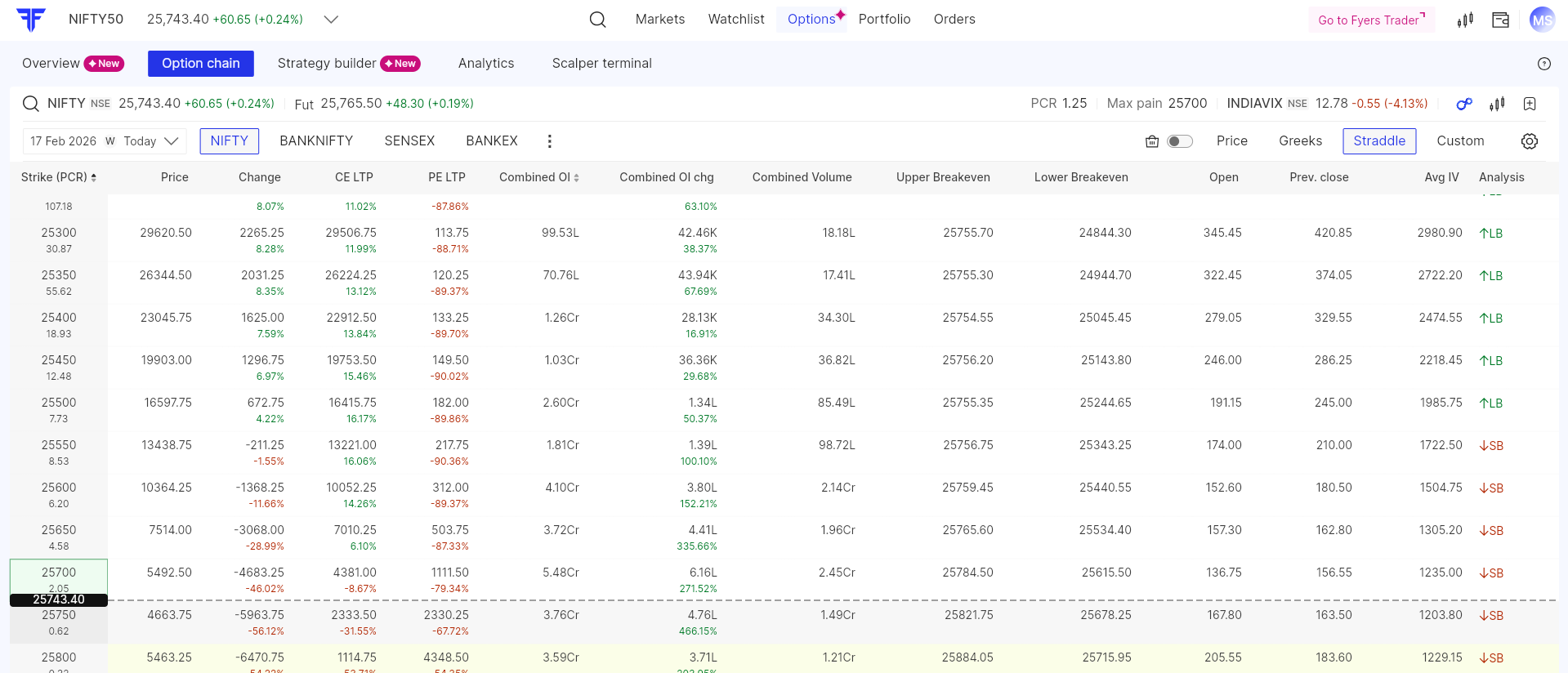 How to use the Straddle and Greeks tabs in FYERS Options Chain?