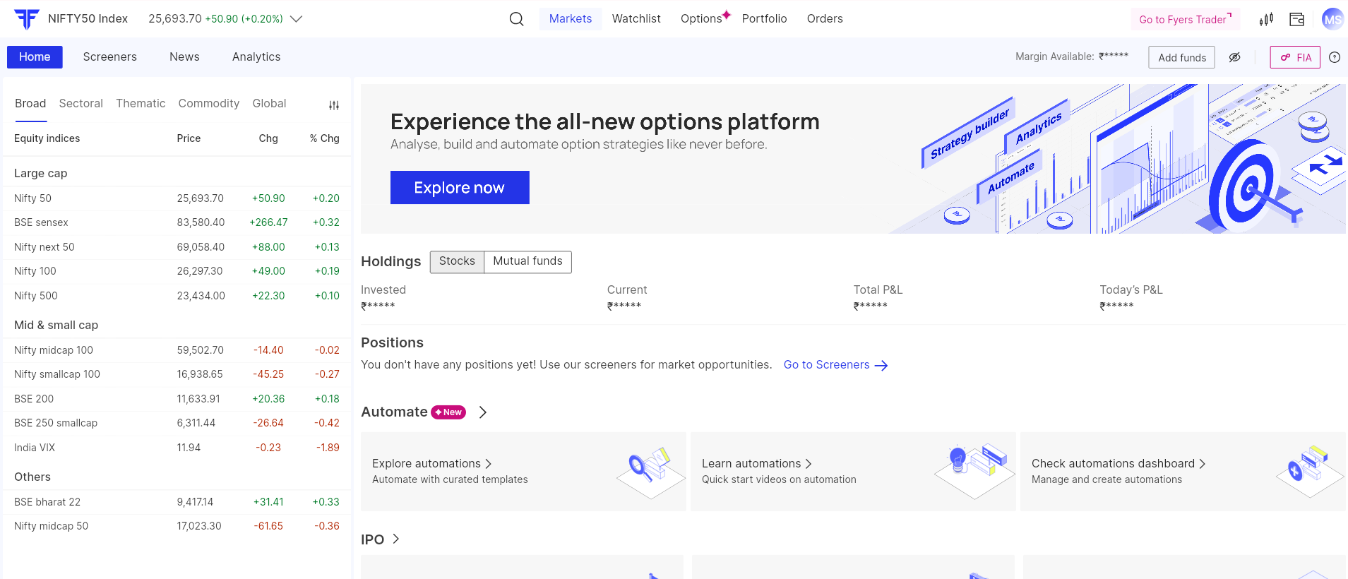 Markets › Home — FYERS Web & FYERS App (mobile)